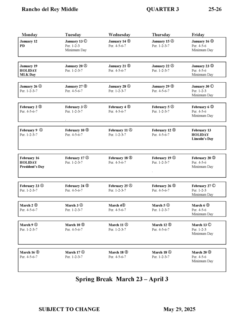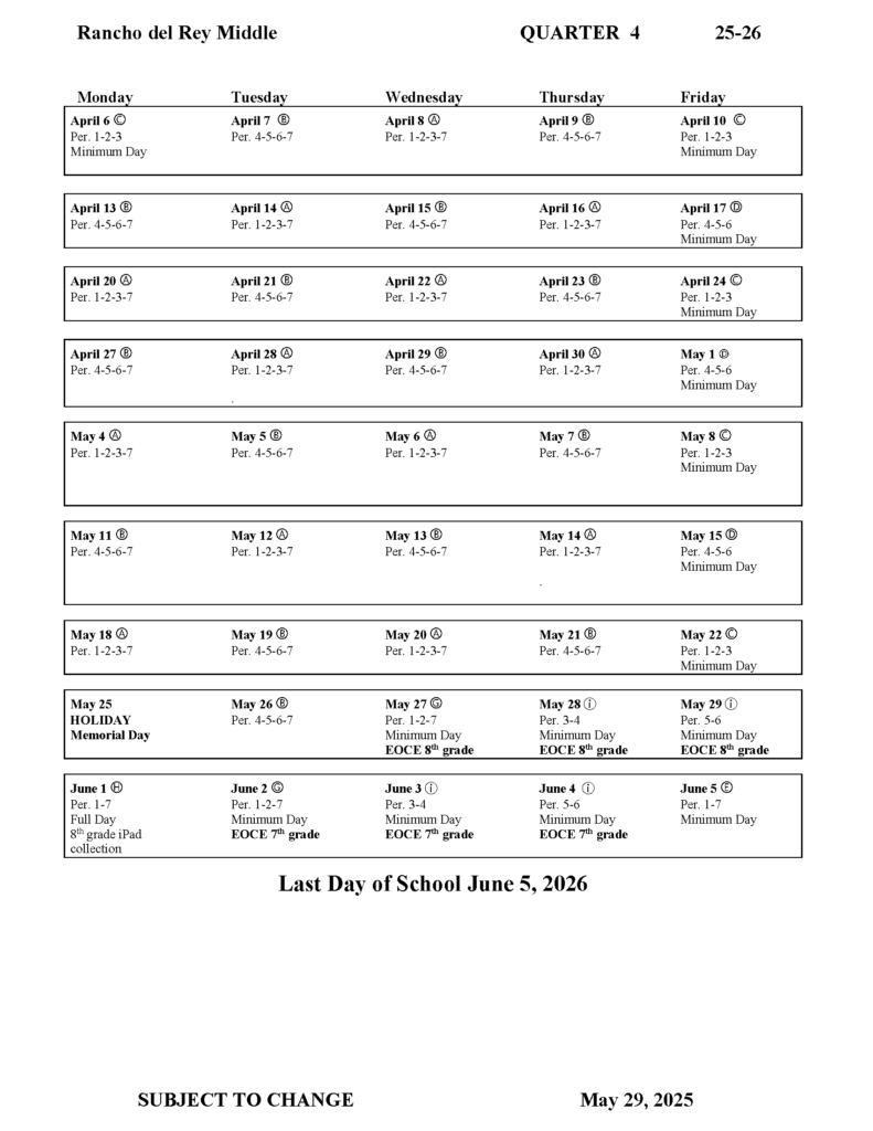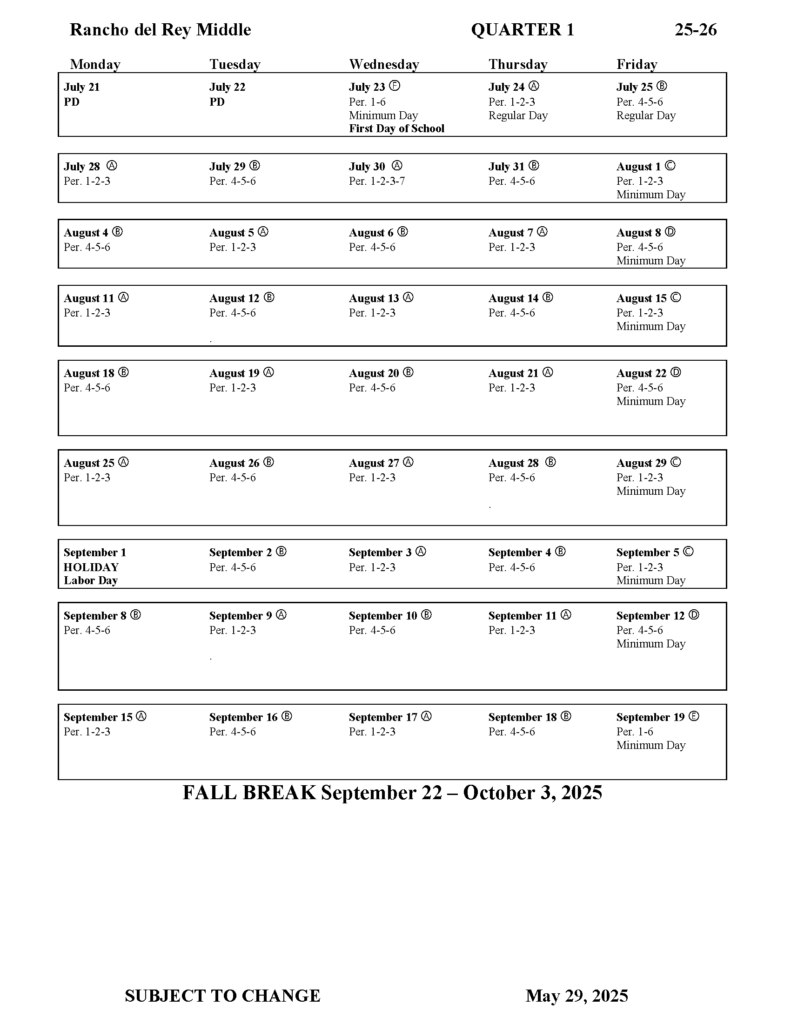 Bell Schedule / Quarter 1 / Dates to Remember 2025 – 2026